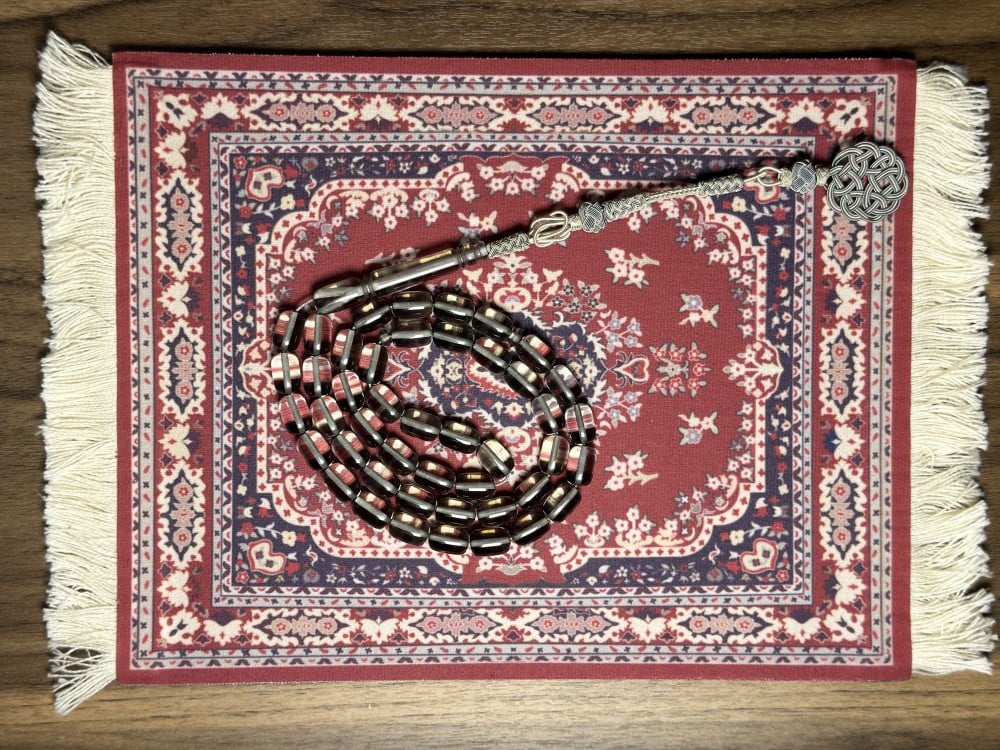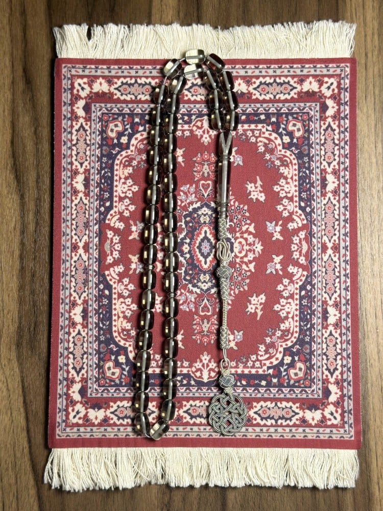 سبحة بكلايت برميلي حرباء بلونها الرصاصي الفاتح. تم تزيين السبحة بطربزونة.